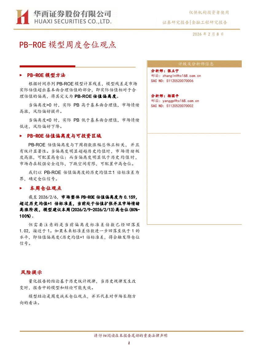华西证券-PB~ROE模型周度仓位观点-260208