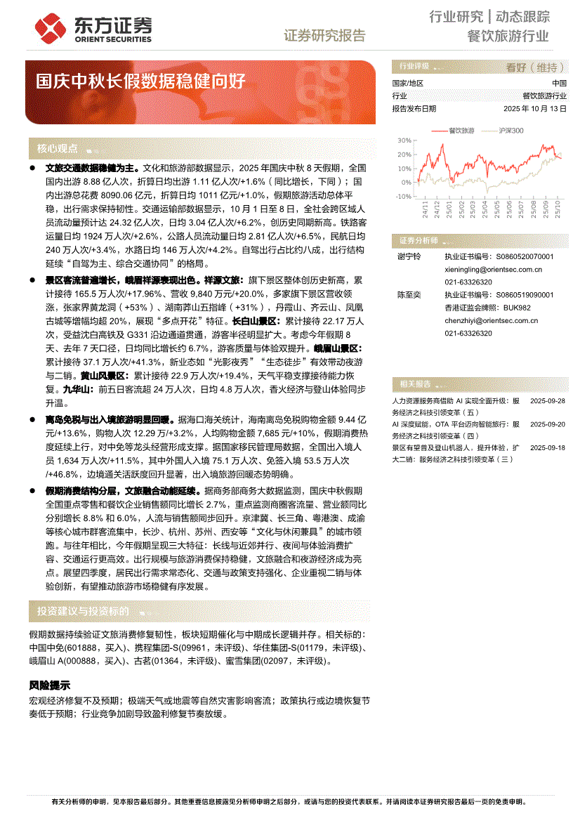 餐饮旅游行业:东方证券-餐饮旅游行业:国庆中秋长假数据稳健向好-251013