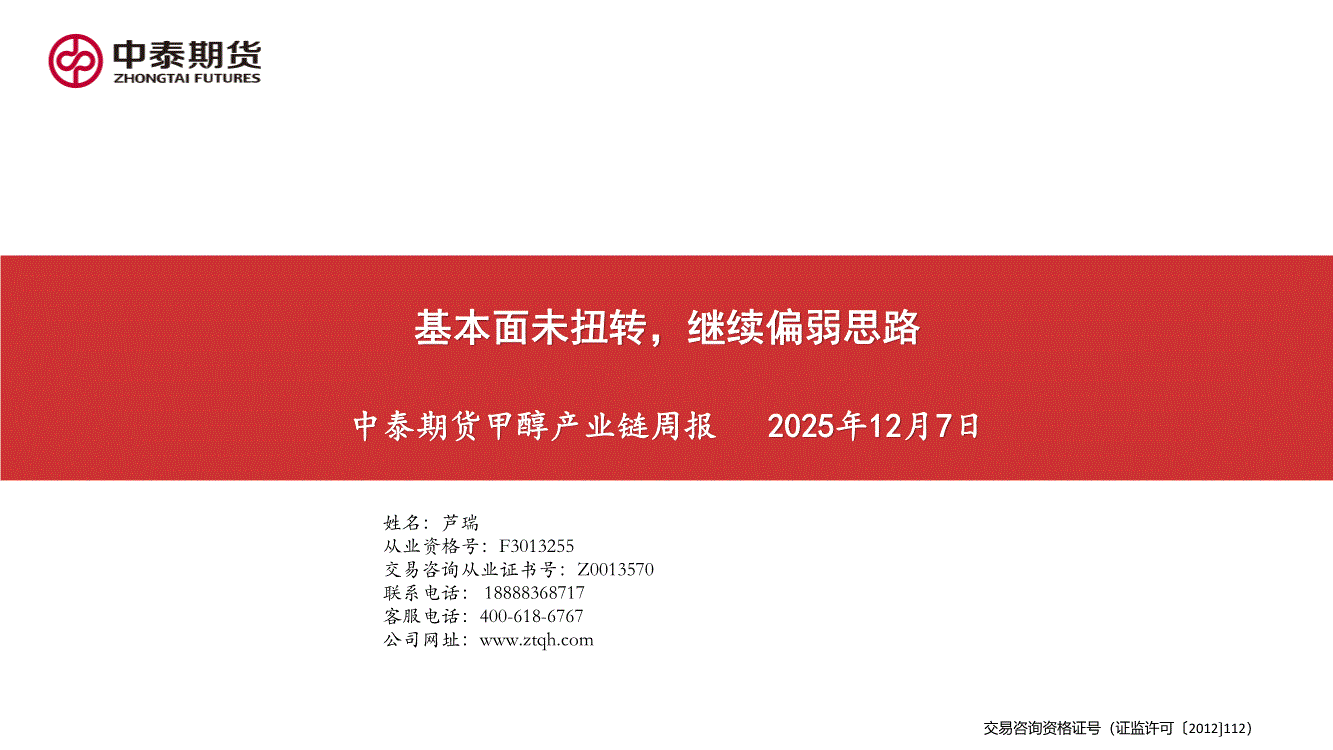 中泰期货-甲醇产业链周报:基本面未扭转,继续偏弱思路-251207