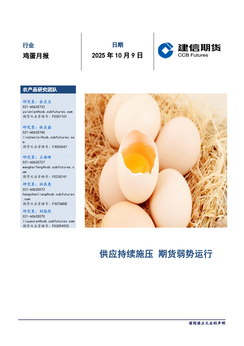 建信期货-鸡蛋月报:供应持续施压,期货弱势运行-251009