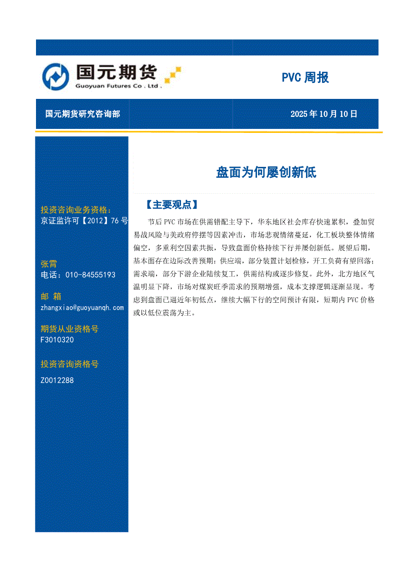 国元期货-PVC周报:盘面为何屡创新低-251010