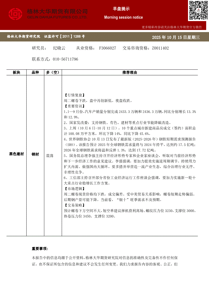 宝城期货-钢材&铁矿石日报:利好预期兑现,钢矿震荡回落-241108