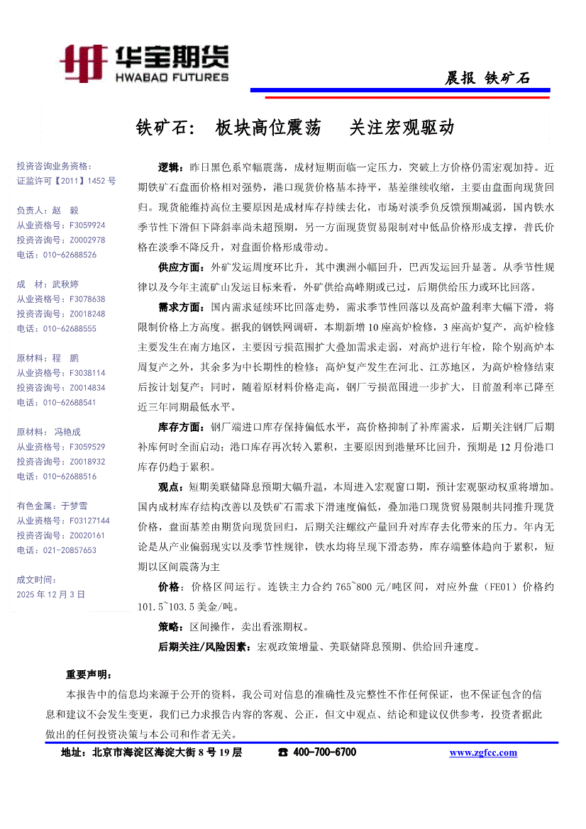 华宝期货-铁矿石晨报:板块高位震荡,关注宏观驱动-251203