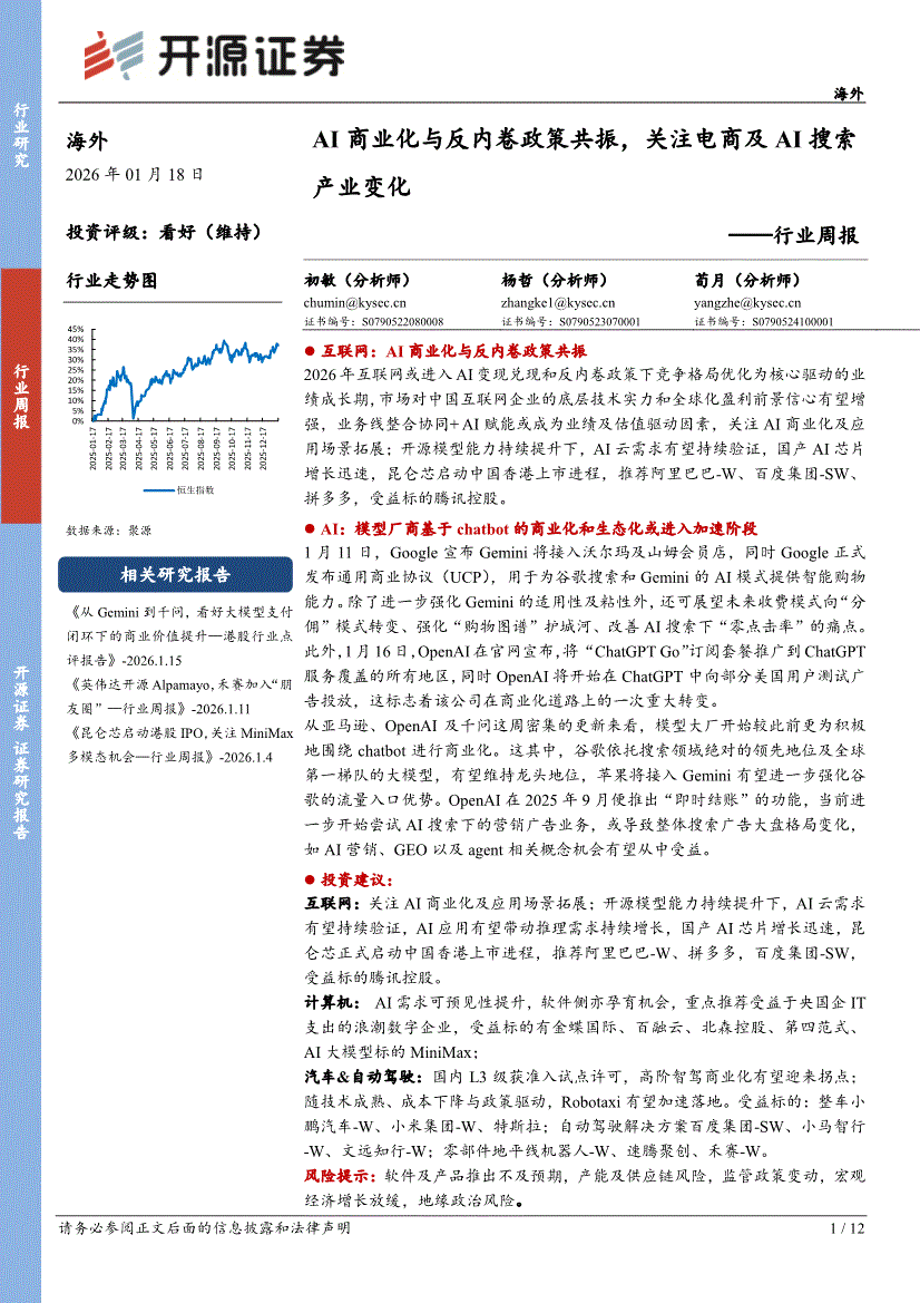 科技行业:开源证券-海外科技行业周报:AI商业化与反内卷政策共振,关注电商及AI搜索产业变化-260118