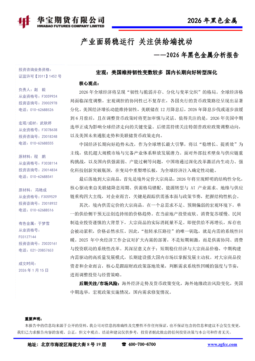 华宝期货-2026年黑色金属分析报告:产业面弱稳运行,关注供给端扰动-260115