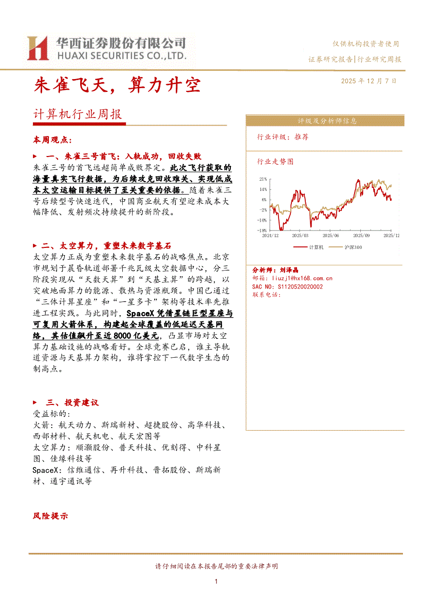 计算机行业:华西证券-计算机行业周报:朱雀飞天,算力升空-251207