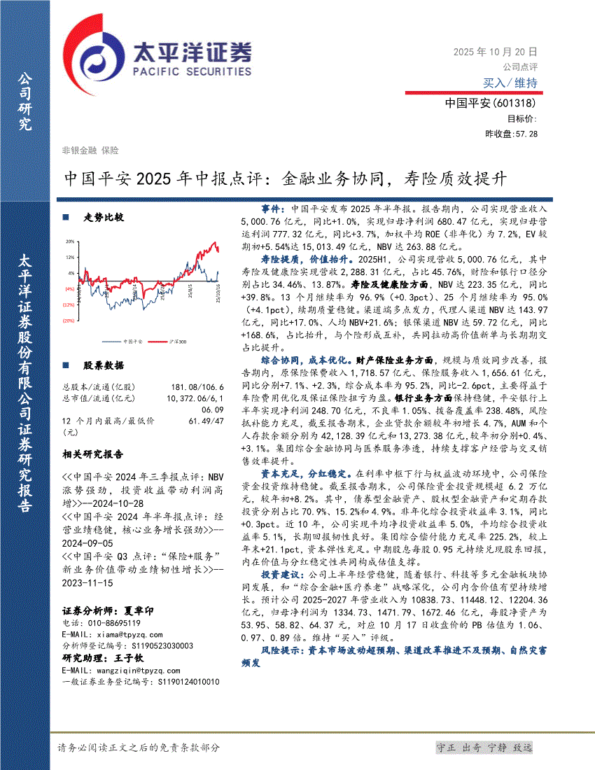 中国平安:太平洋证券-中国平安-601318-2025年中报点评:金融业务协同,寿险质效提升-251020