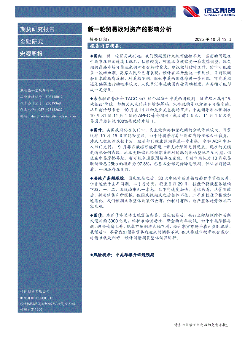 信达期货-宏观周报:新一轮贸易战对资产的影响分析-251012
