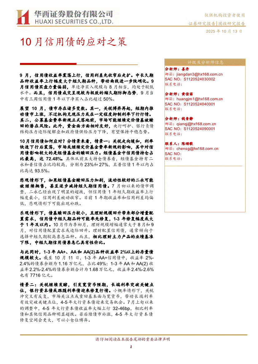 华西证券-10月信用债的应对之策-251013