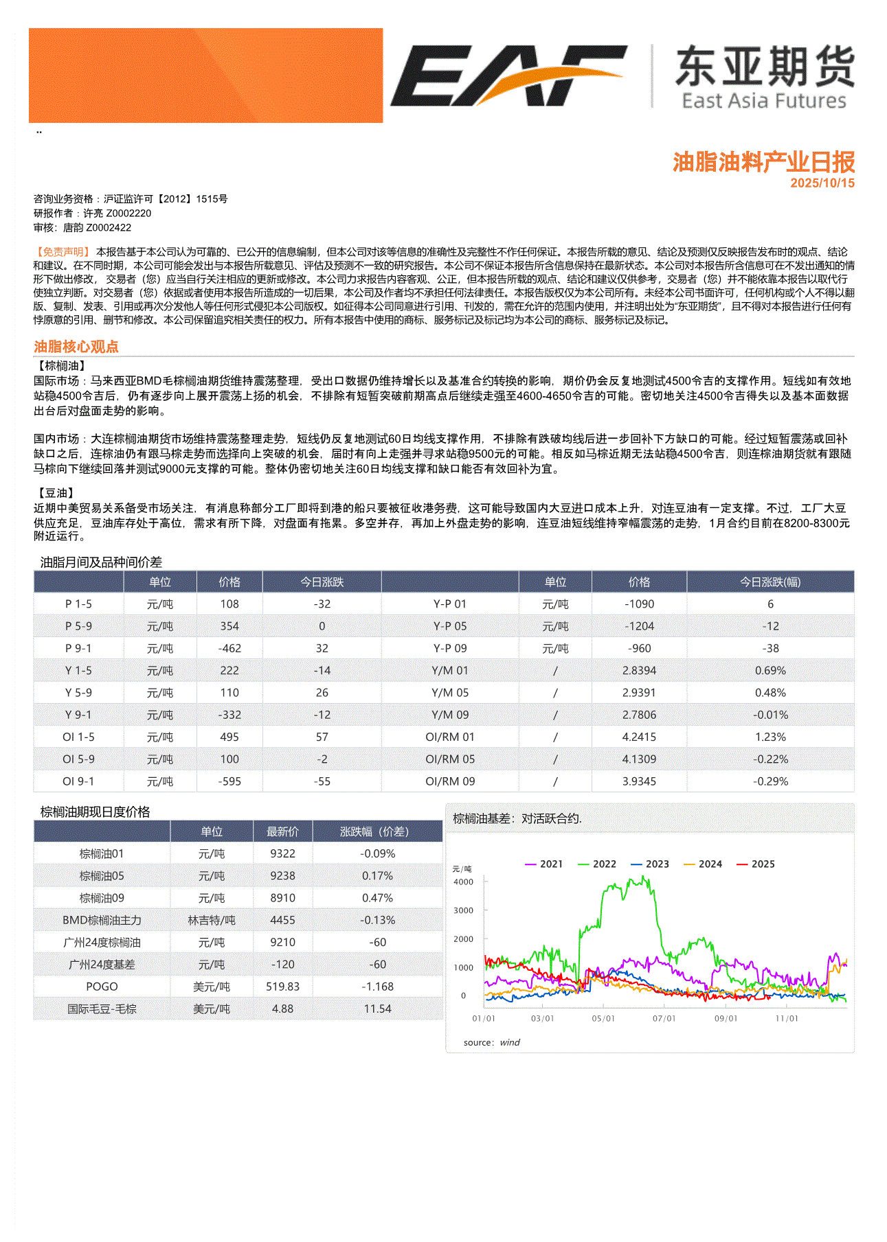 上海东亚期货-油脂油料产业日报-251015