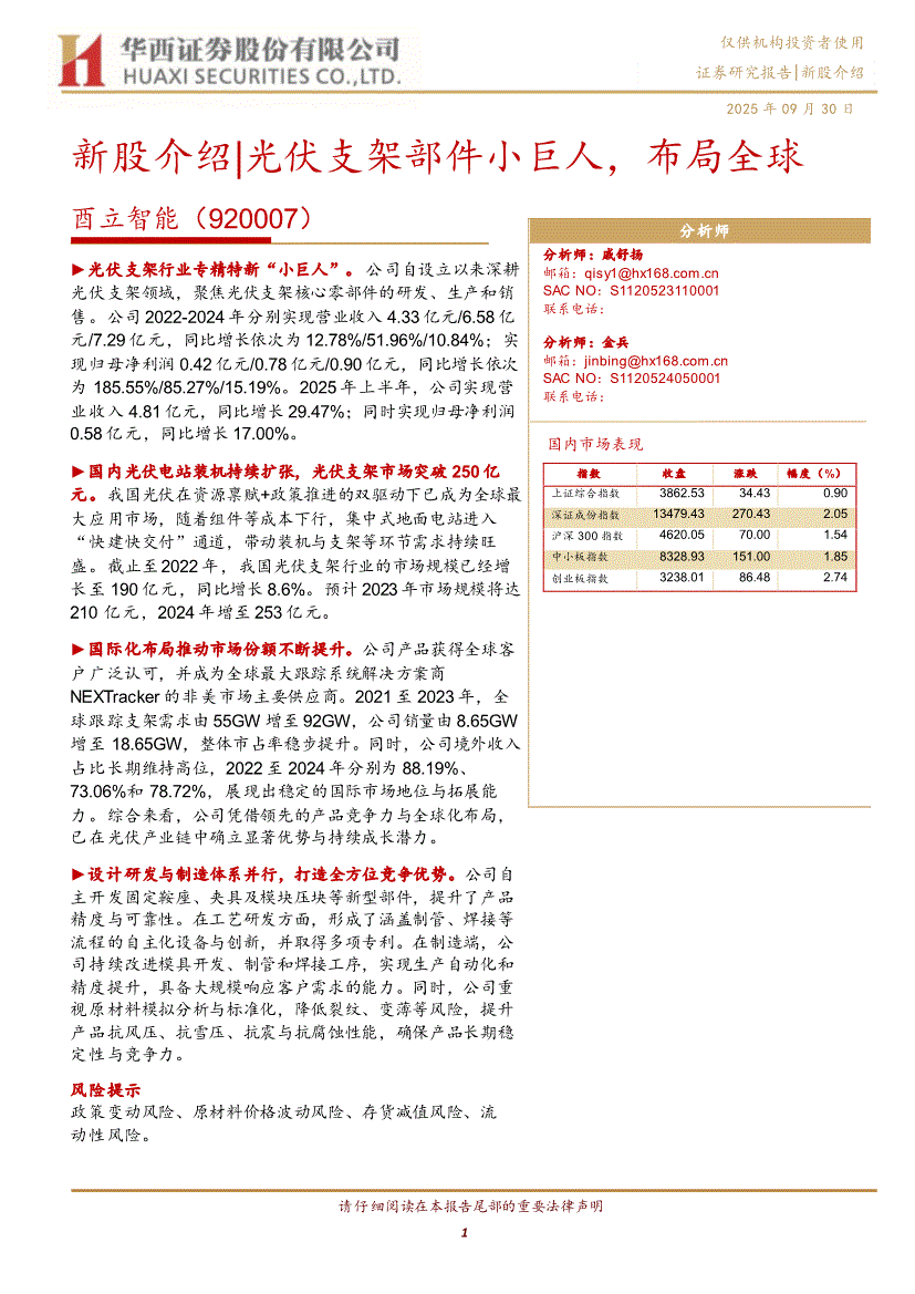 华西证券-酉立智能(920007):新股介绍|光伏支架部件小巨人,布局全球-250930