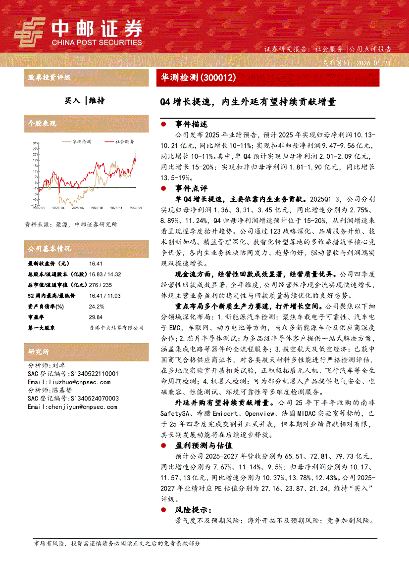 华测检测:中邮证券-华测检测-300012-Q4增长提速,内生外延有望持续贡献增量-260121