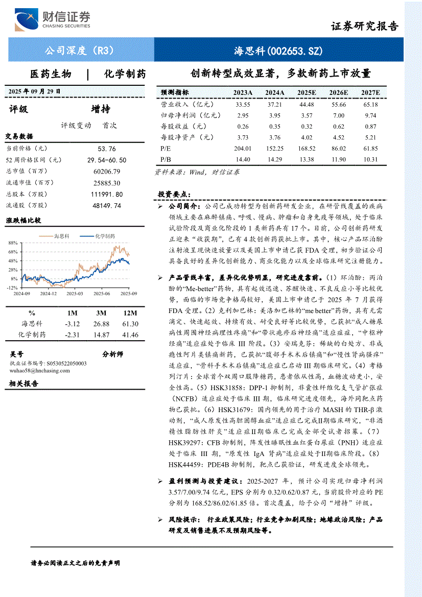 海思科:财信证券-海思科-002653-创新转型成效显著,多款新药上市放量-250929