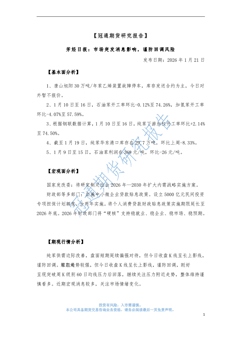 冠通期货-芳烃日报:市场突发消息影响,谨防回调风险-260121