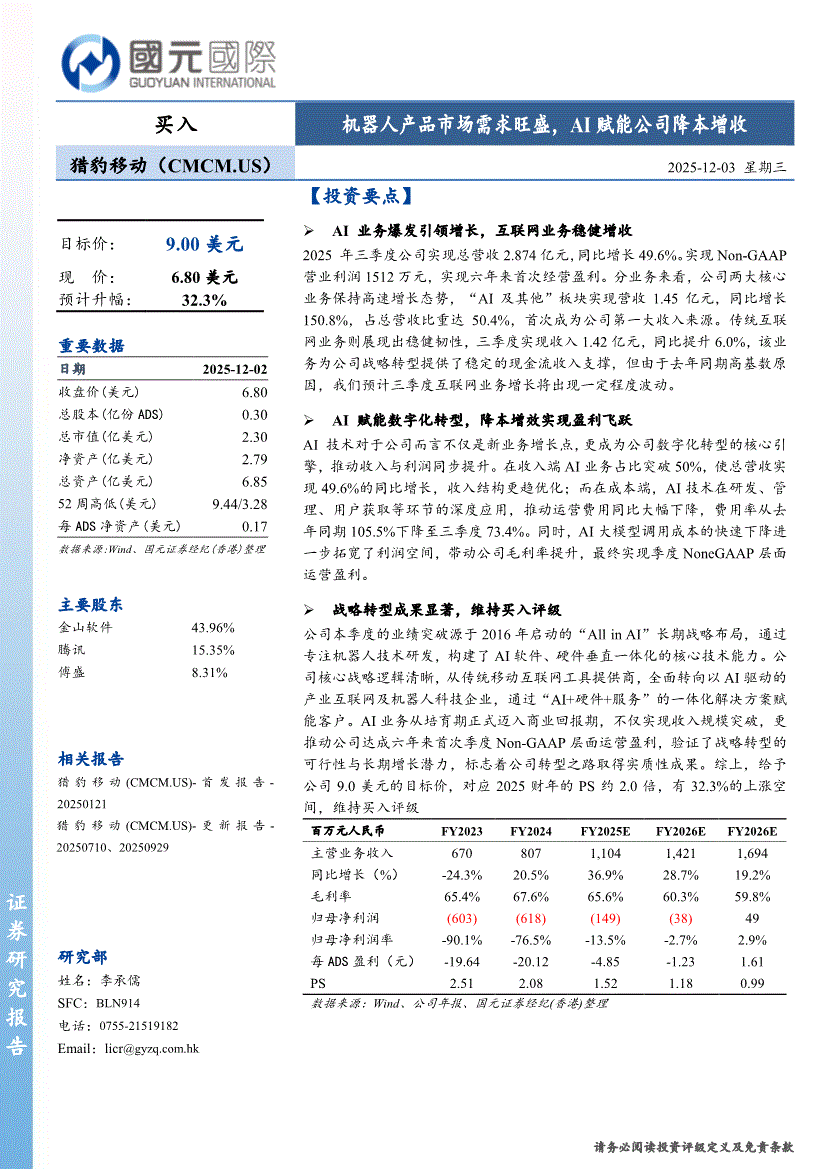猎豹移动:国元国际-猎豹移动-CMCM.US-机器人产品市场需求旺盛,AI赋能公司降本增收-251203