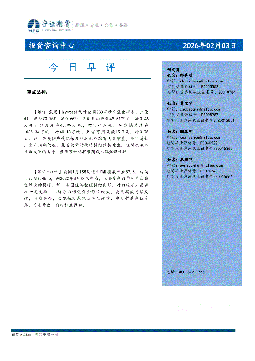 宁证期货-今日早评-260203