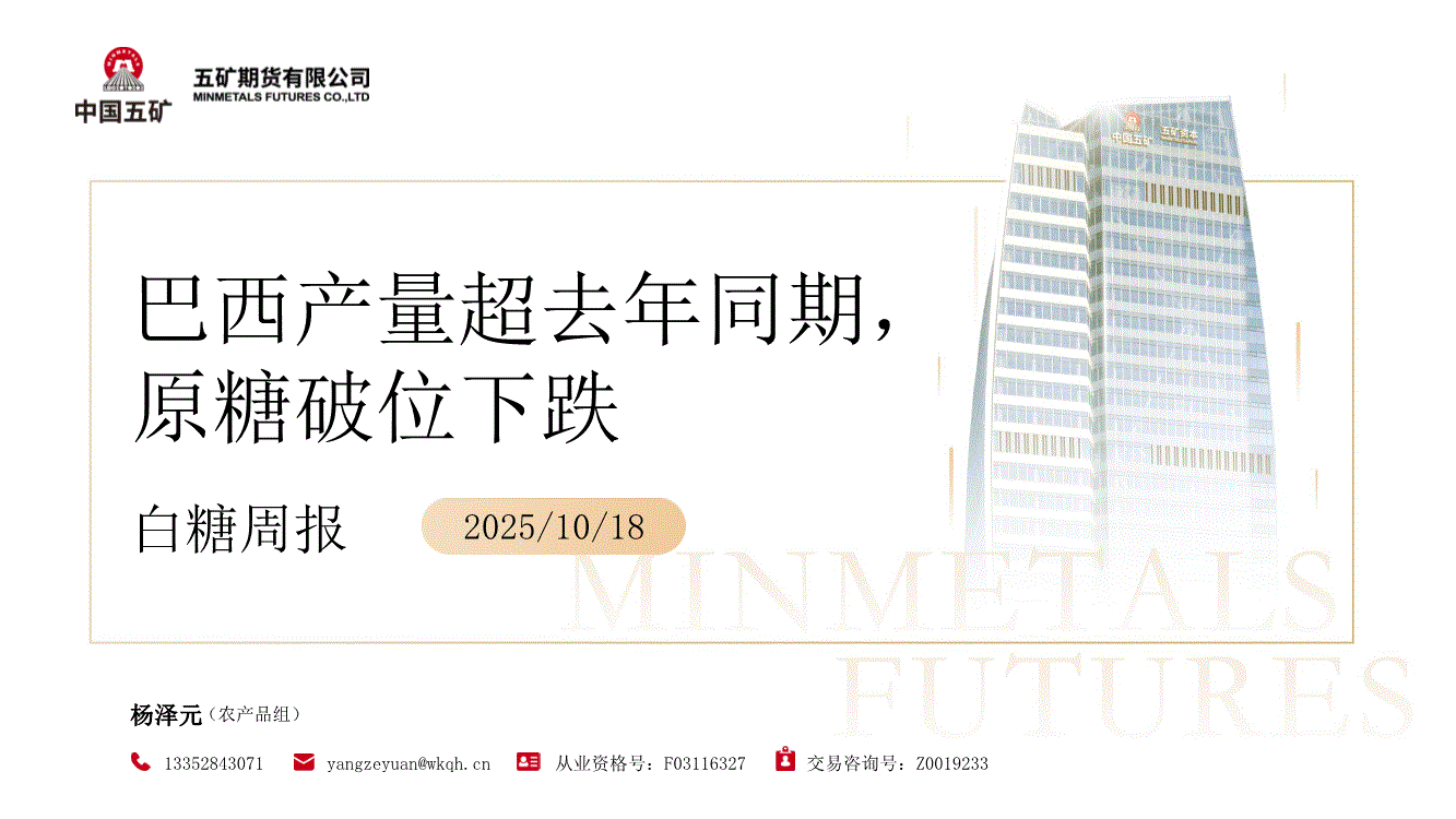 五矿期货-白糖周报:巴西产量超去年同期,原糖破位下跌-251018