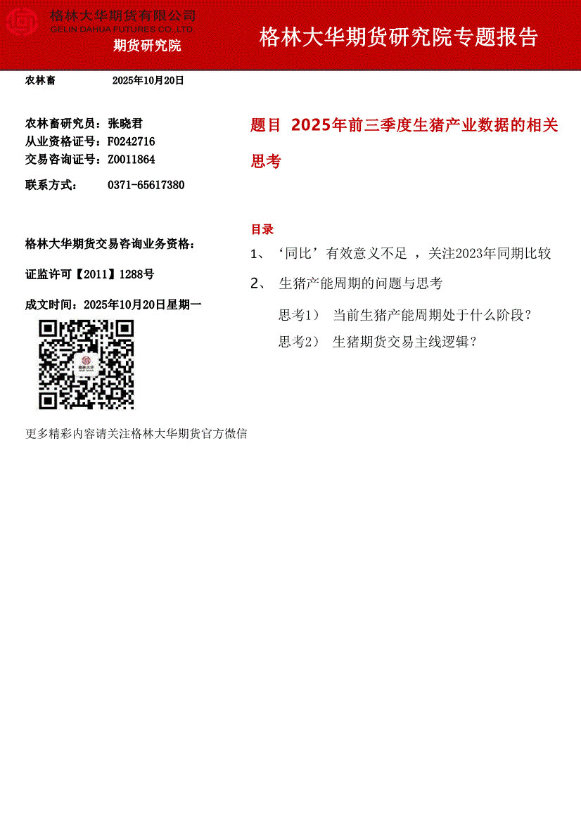 格林大华期货-2025年前三季度生猪产业数据的相关思考-251020