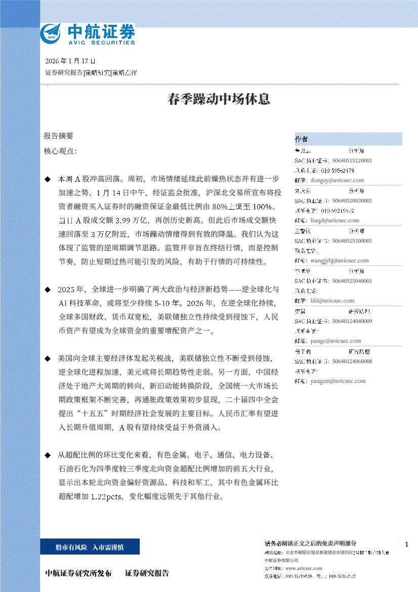 中航证券-春季躁动中场休息-260117
