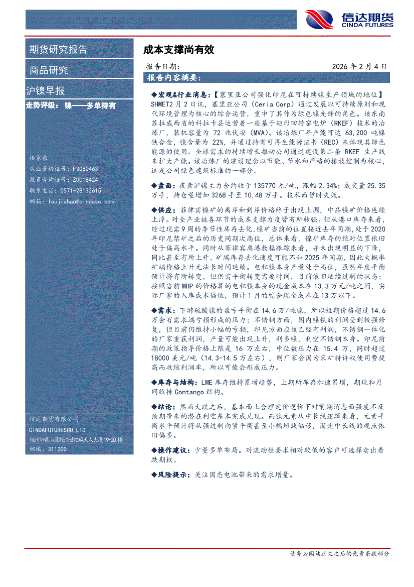 信达期货-沪镍早报:成本支撑尚有效-260204