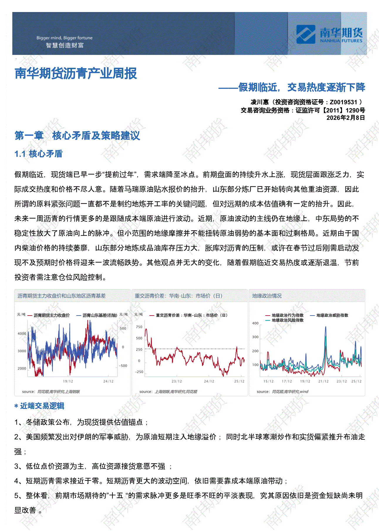 南华期货-沥青产业周报:假期临近,交易热度逐渐下降-260208