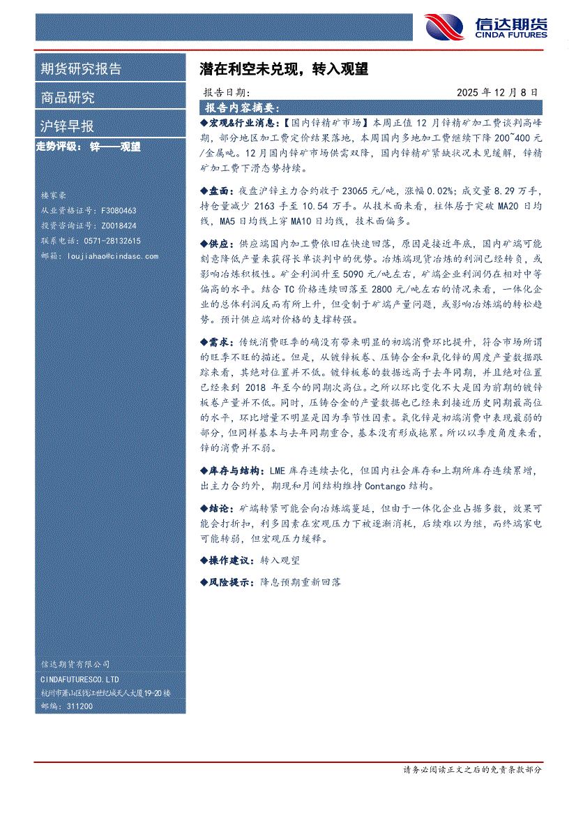 信达期货-沪锌早报:潜在利空未兑现,转入观望-251208