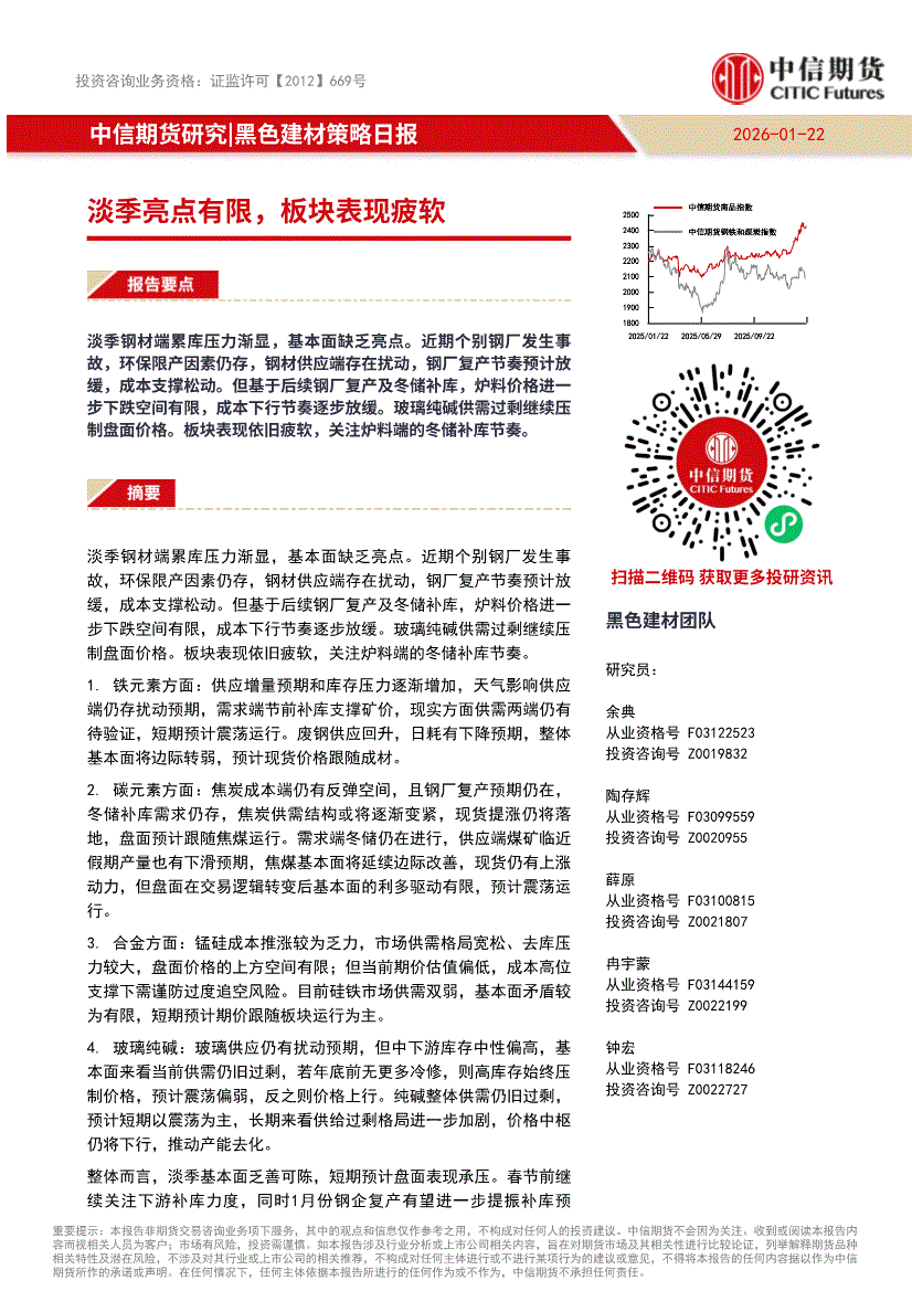 中信期货-黑色建材策略日报:淡季亮点有限,板块表现疲软-260122