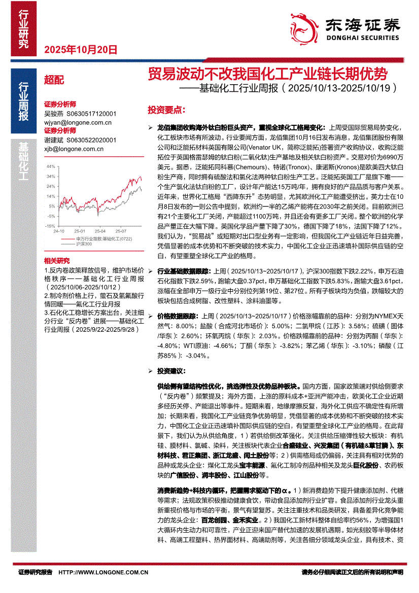 基础化工行业:东海证券-基础化工行业周报:贸易波动不改我国化工产业链长期优势-251020