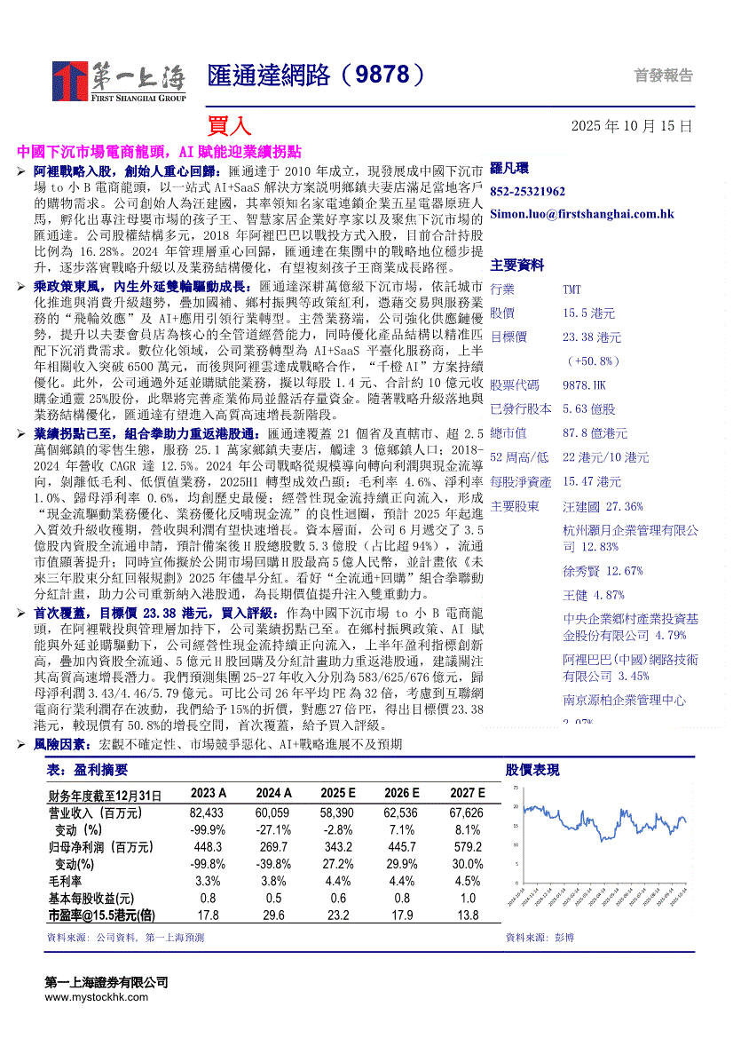 汇通达网络:第一上海-汇通达网络-9878.HK-中国下沉市场电商龙头,AI赋能迎业续拐点-251015