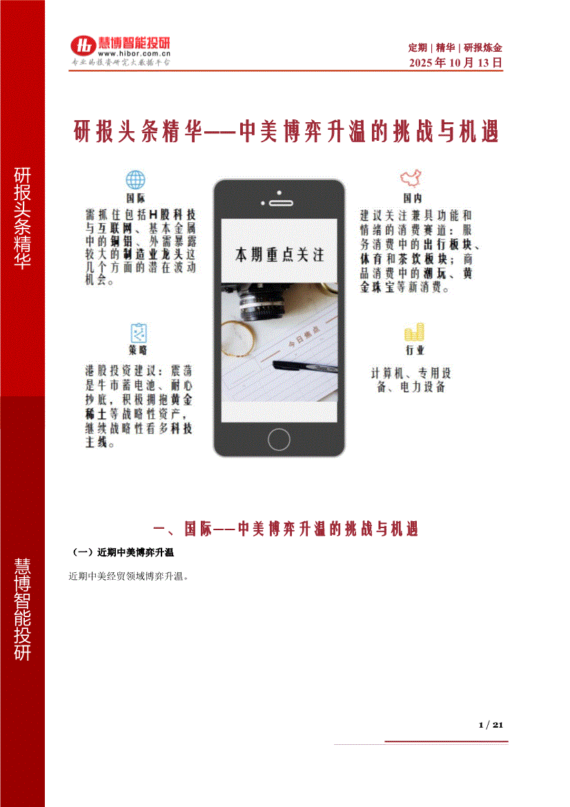 慧博智能投研-慧博研报炼金之研报头条精华:中美博弈升温的挑战与机遇-251013