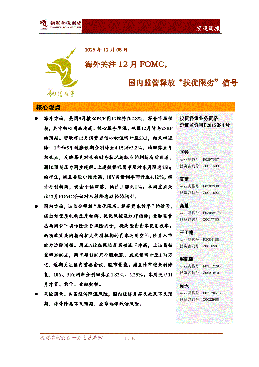 铜冠金源期货-宏观周报:海外关注12月FOMC,国内监管释放“扶优限劣”信号-251208