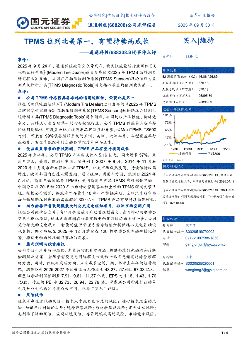 道通科技:国元证券-道通科技-688208-事件点评:TPMS位列北美第一,有望持续高成长-250930