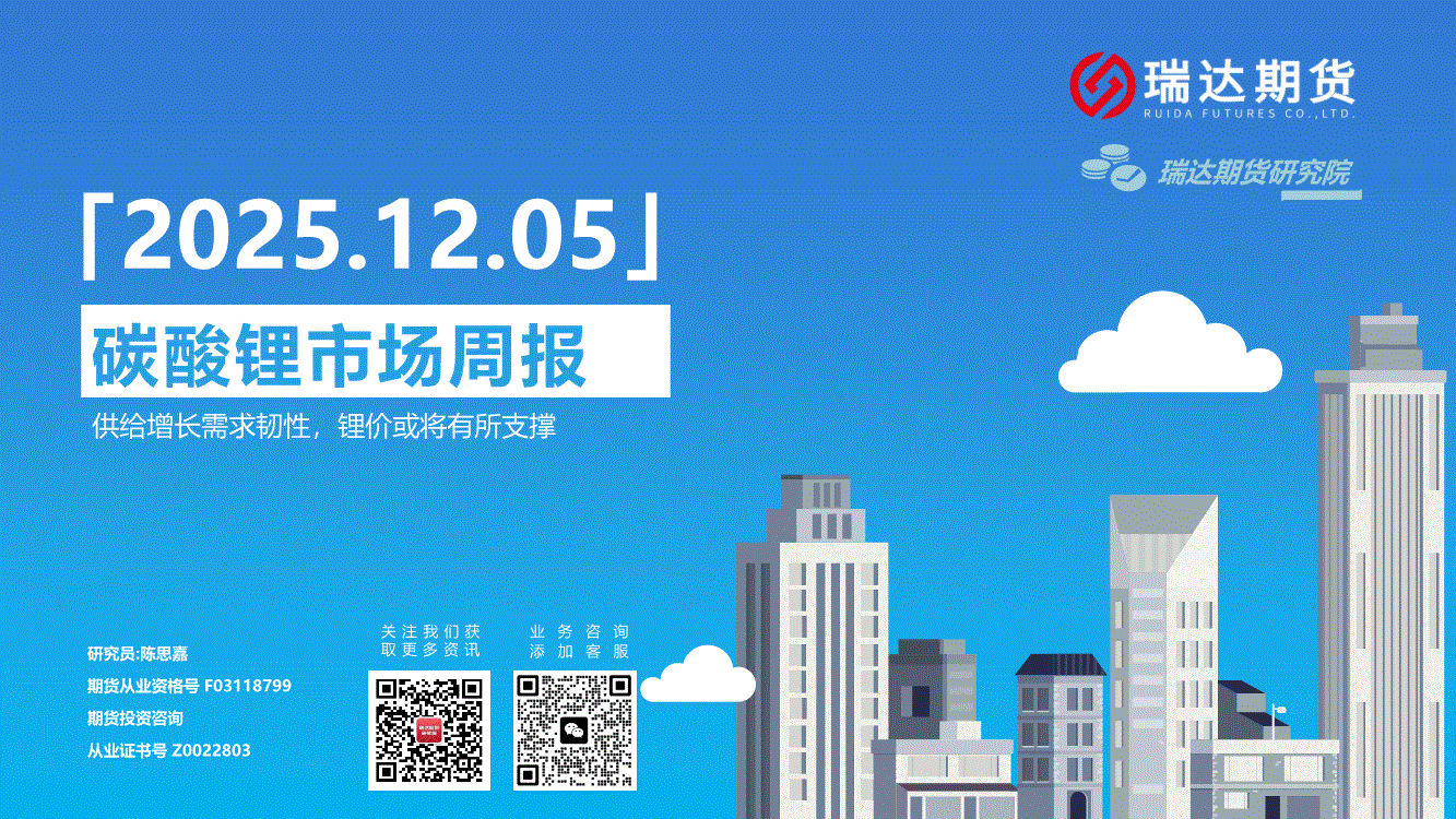 瑞达期货-碳酸锂市场周报:供给增长需求韧性,锂价或将有所支撑-251205