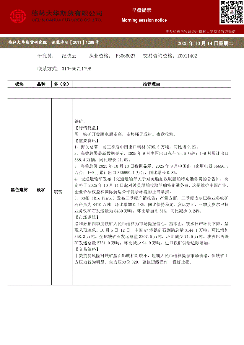 瑞达期货-铁矿石市场周报:海外衰退担忧,铁矿大幅下跌-240809