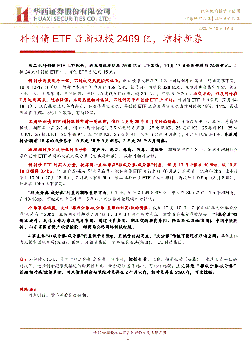 华西证券-固收点评报告:科创债ETF最新规模2469亿,增持新券-251019
