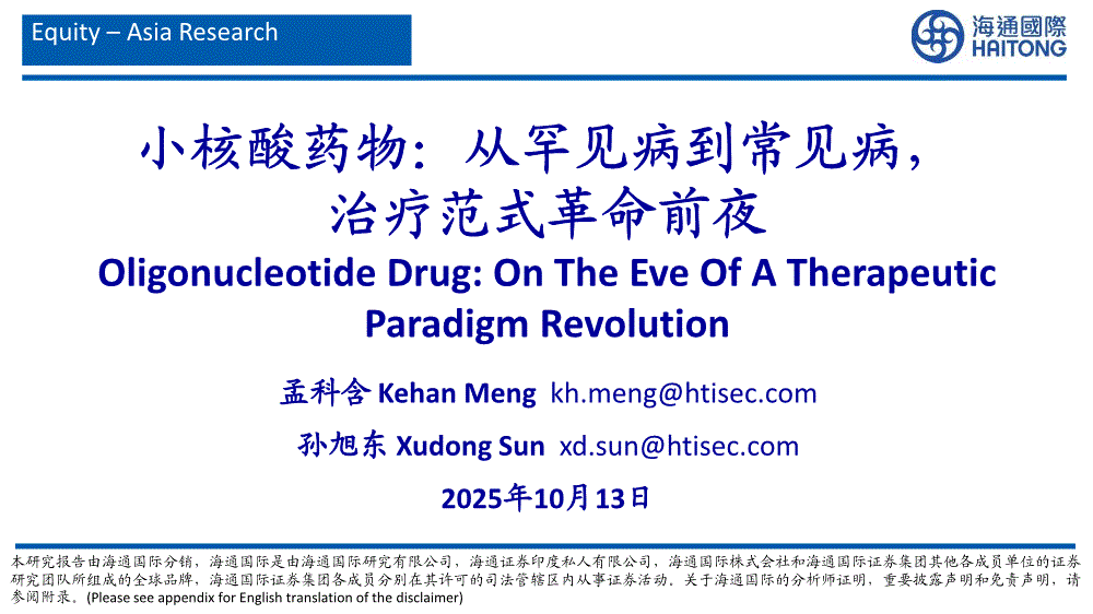 小核酸药物行业:海通国际-小核酸药物行业:从罕见病到常见病,治疗范式革命前夜-251013