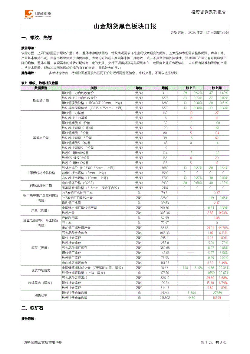 山金期货-黑色板块日报-260121