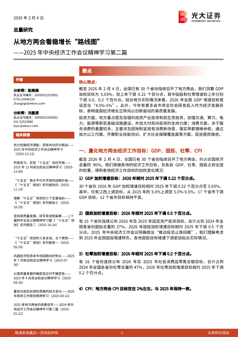 光大证券-2025年中央经济工作会议精神学习第二篇:从地方两会看稳增长“路线图”-260204