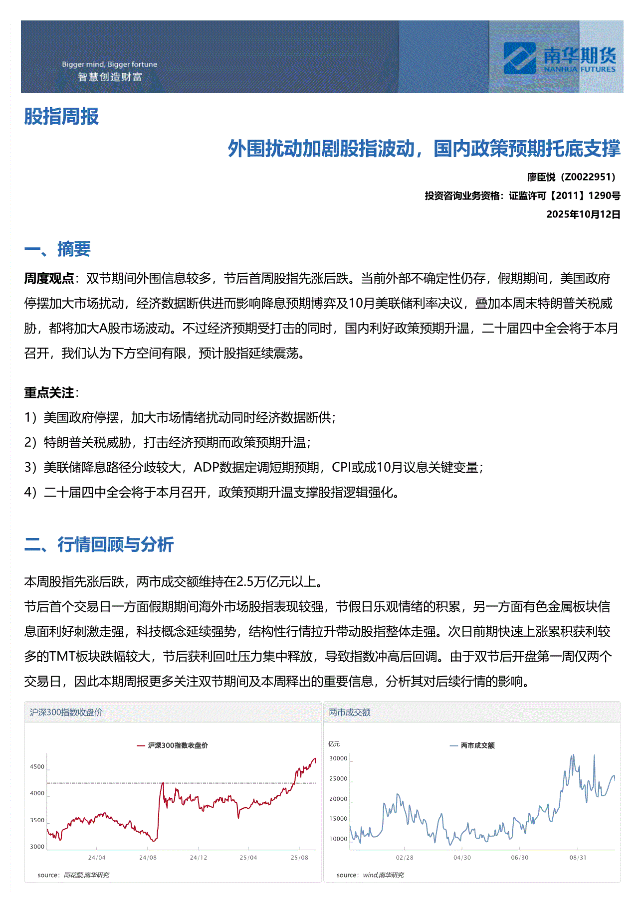 南华期货-股指周报:外围扰动加剧股指波动,国内政策预期托底支撑-251012