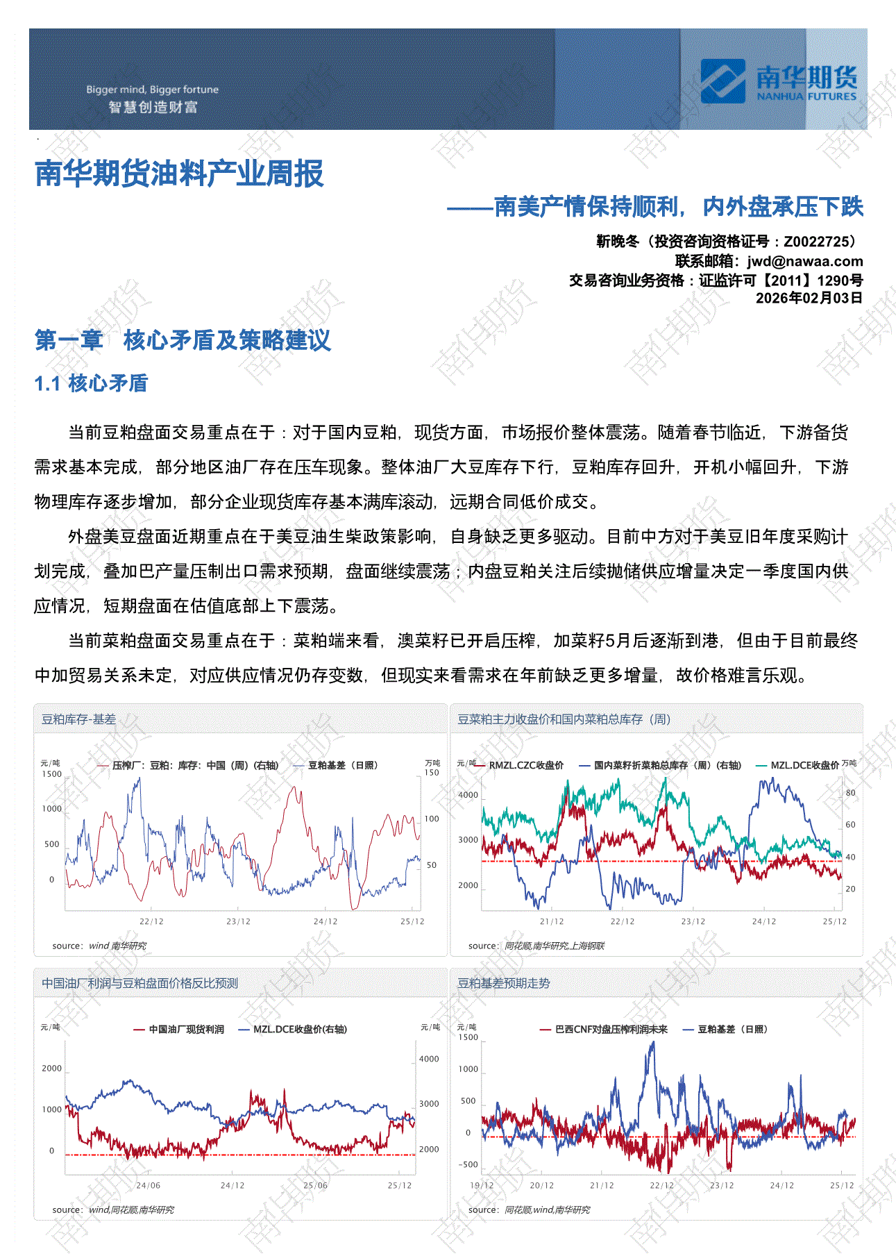 南华期货-油料产业周报:南美产情保持顺利,内外盘承压下跌-260203