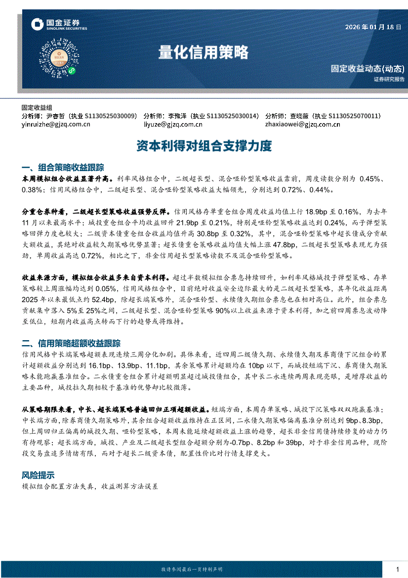 国金证券-量化信用策略:资本利得对组合支撑力度-260118