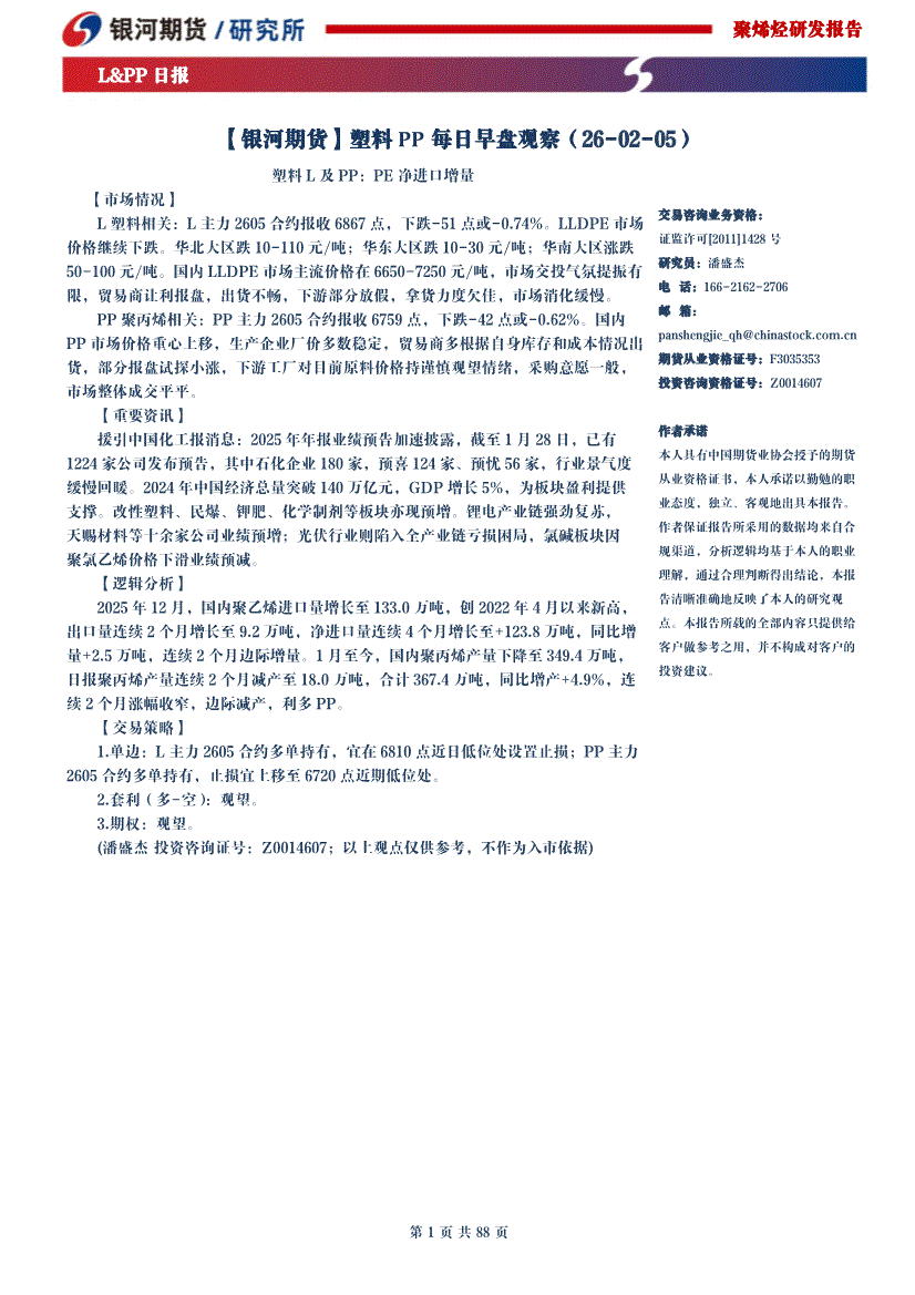 银河期货-塑料PP每日早盘观察-260205