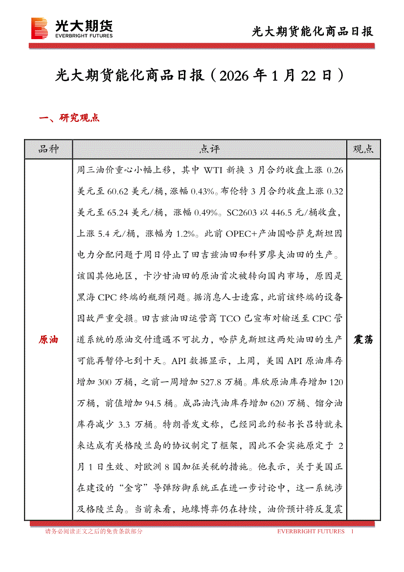 光大期货-能化商品日报-260122