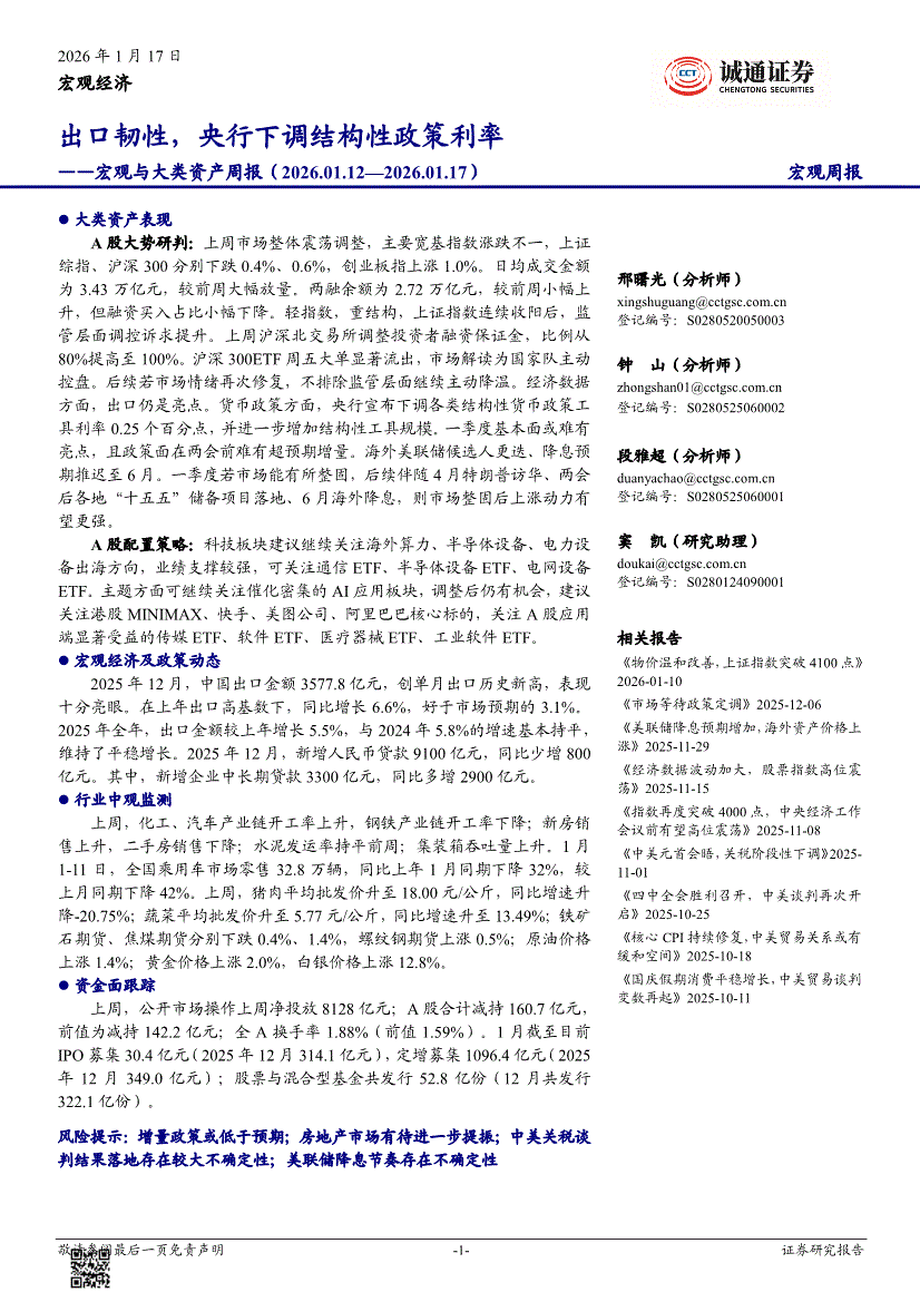 诚通证券-宏观与大类资产周报:出口韧性,央行下调结构性政策利率-260117