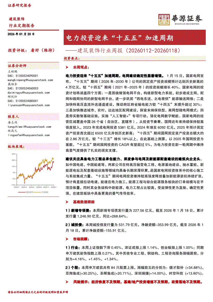 建筑装饰行业:华源证券-建筑装饰行业周报:电力投资迎来“十五五”加速周期-260120