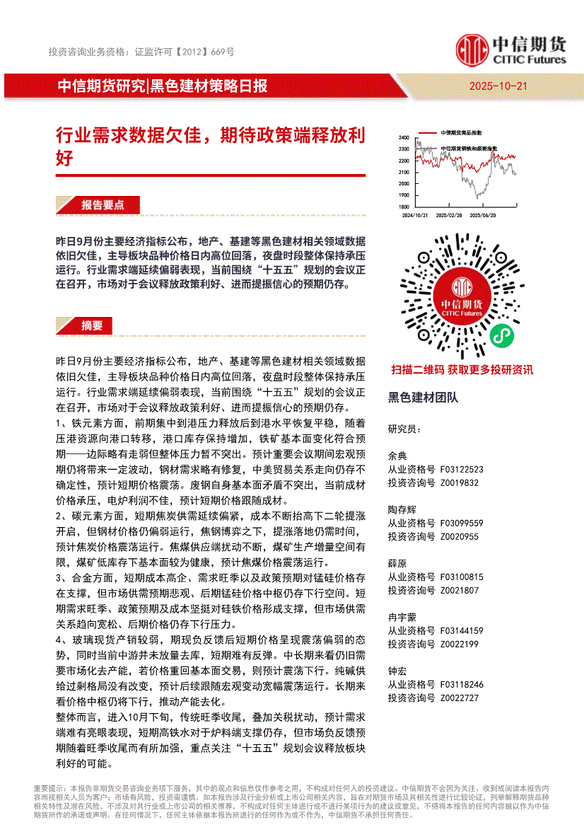 中信期货-黑色建材策略日报:行业需求数据欠佳,期待政策端释放利好-251021
