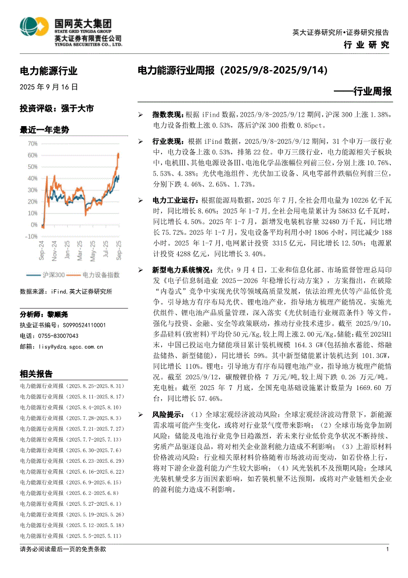 电力能源行业:英大证券-电力能源行业周报-250916