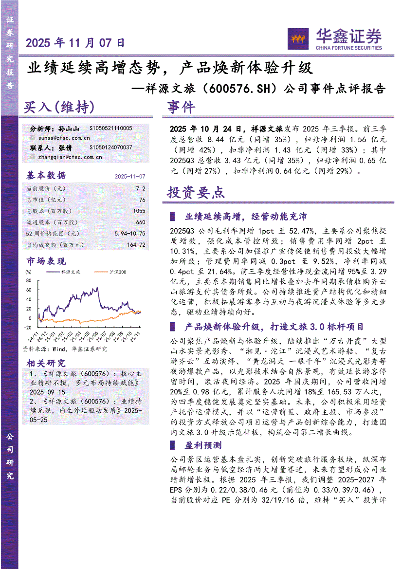 祥源文旅:华鑫证券-祥源文旅-600576-公司事件点评报告:业绩延续高增态势,产品焕新体验升级-251107
