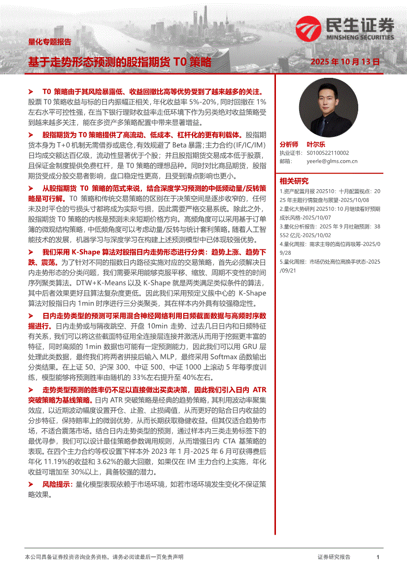 民生证券-量化专题报告:基于走势形态预测的股指期货T0策略-251013