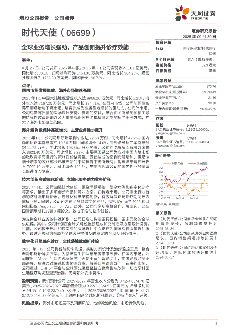 时代天使:天风证券-时代天使-6699.HK-全球业务增长强劲,产品创新提升诊疗效能-250930